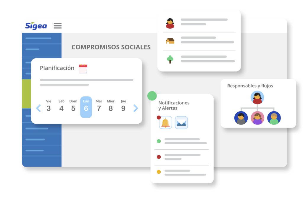 Facilita la generación de informes de cumplimiento para evaluar el progreso de los compromisos. Estos informes pueden ser utilizados para la comunicación interna y externa, así como para demostrar el impacto positivo en las comunidades involucradas.